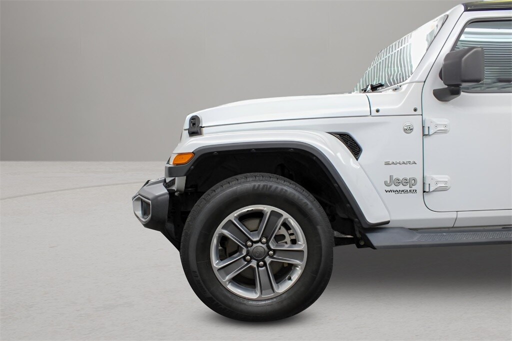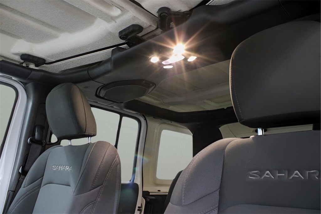 Exterior Features: The Sahara is distinguished by body-colored fender flares and 18-inch polished aluminum wheels. It also came with fog lamps, power-heated exterior mirrors, and a black three-piece hard top.